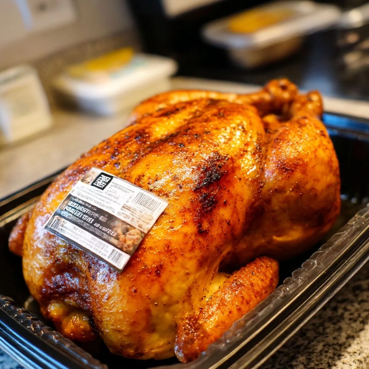 The ingredient list is printed on the bottom label of every clam-shell container. The brine is injected directly into the meat before roasting, which is what gives the chicken its signature juicy texture and consistent flavor. Unlike many store-bought rotisserie options, Costco does not use MSG or artificial colors. The chickens are roasted in industrial rotisserie ovens at approximately 350°F for about 3 hours, resulting in that deep golden-brown exterior customers recognize.