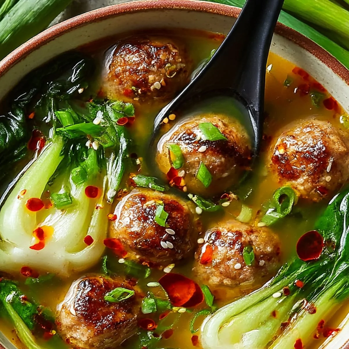 - Double-Ginger Flavor Architecture: Fresh ginger appears in two distinct roles — 2 tsp grated directly into the meatball mixture for a warm, peppery bite embedded in each one, and a separate 1 tbsp sautéed into the broth base for aromatic depth. This dual approach means every component of the bowl carries its own ginger presence, creating a layered warmth that single-source ginger recipes never achieve.